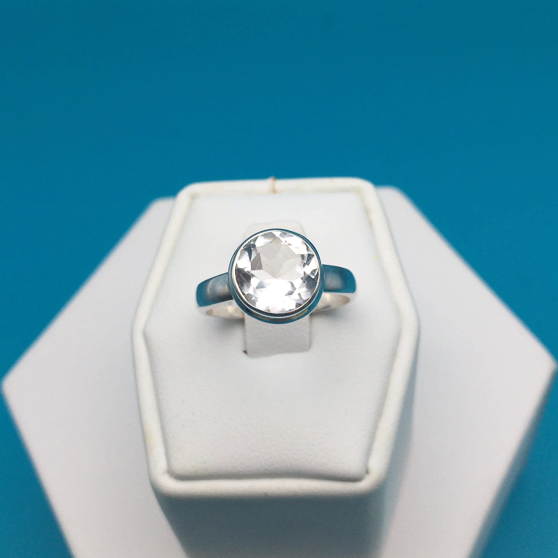 Clear Faceted Quartz Sterling Silver Ring size 7